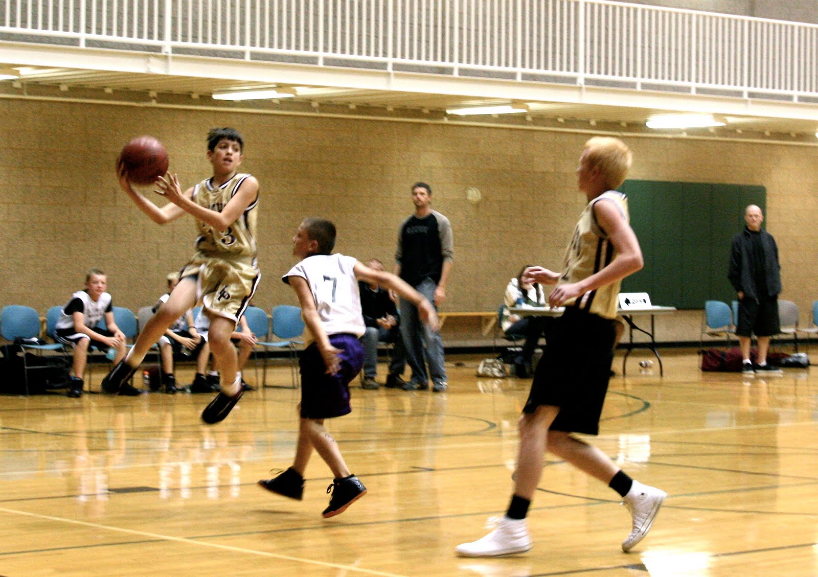 So that's what a real gym looks like. Do they put springs in the wood floors or something? Nah, maybe just Z's shoes, he's the only one jumping. I guess he has too since he's playing kids 3 years olders than him.